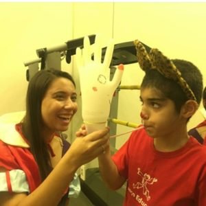 Prenda uma luva em um copo plástico, no copo faça um furo e coloque um canudo. Peça para a criança puxar o ar bem fundo e assoprar no canudo para ver o que aparece. É interessante fazer desenhos na luva.