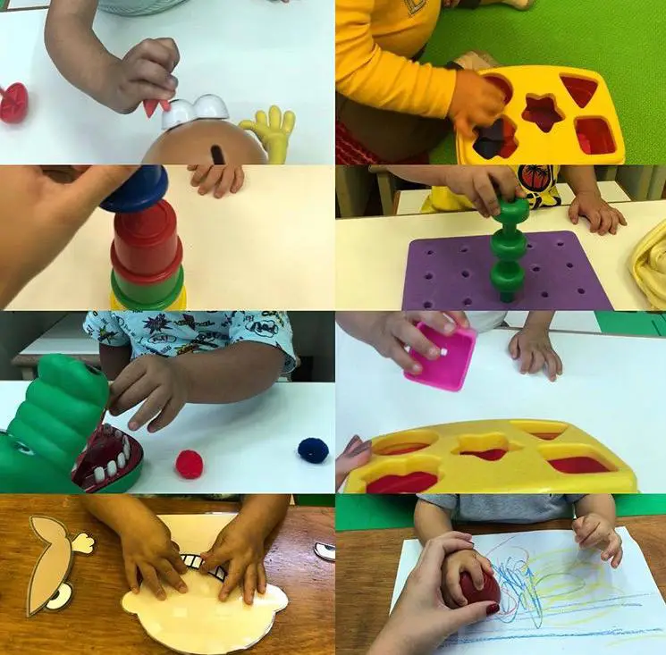 - Colocar objetos dentro de um recipiente, seguindo instrução verbal, assim retira um a um;