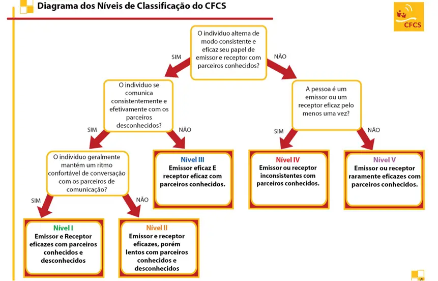 O objetivo do CFCS é classificar o desempenho da comunicação diária dos indivíduos com paralisia cerebral em cinco níveis. Este sistema aborda os níveis de atividade e participação de acordo com a Classificação Internacional de Funcionalidade, Incapacidade e Saúde (CIF) da Organização Mundial de Saúde (OMS). Determinar o nível do CFCS não requer testes, e ele não substitui as avaliações padronizadas de comunicação. O CFCS não é um teste.