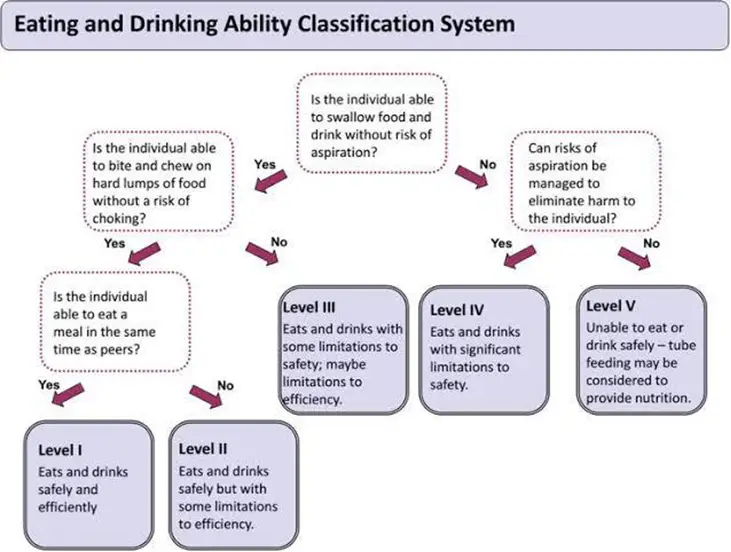 O sistema EDACS é usado para medir a capacidade de comer e beber de uma criança. Isso inclui segurança (aspiração e engasgo) ao comer e beber, eficiência (perda de comida e rapidez no término da refeição) e a quantidade de assistência de que uma pessoa precisa.